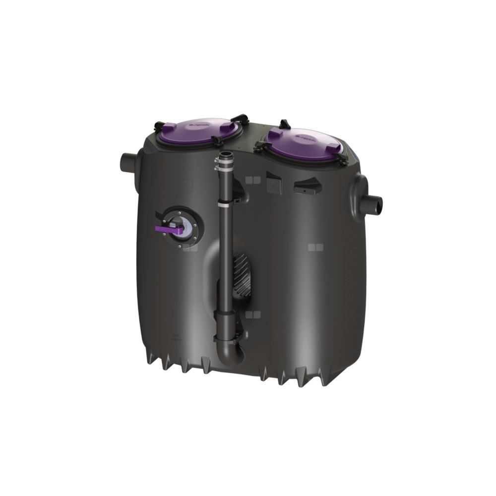 Separator do ścieków zawierających tłuszcze jest przystosowany do swobodnego ustawienia w pomieszczeniach nieprzemarzających, a jego zbiornik nie zawiera metalowych elementów. Zbiornik wykonany z trwałego tworzywa sztucznego (PE) jest wyposażony w zintegrowany osadnik. Dwie szczelne zapachowo pokrywy z zamknięciami szybkomocującymi umożliwiają łatwy dostęp w celu wyczyszczenia lub konserwacji. W celu zredukowania emisji nieprzyjemnych zapachów podczas opróżniania separatora przewidziany został króciec do bezpośredniego odprowadzania ścieków. Po usunięciu zawartości w zbiorniku pozostają maks. 3 litry objętości resztkowej osadów. Gwarancja na tworzywo PE wynosi 20 lat.