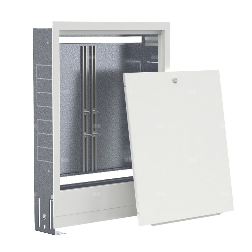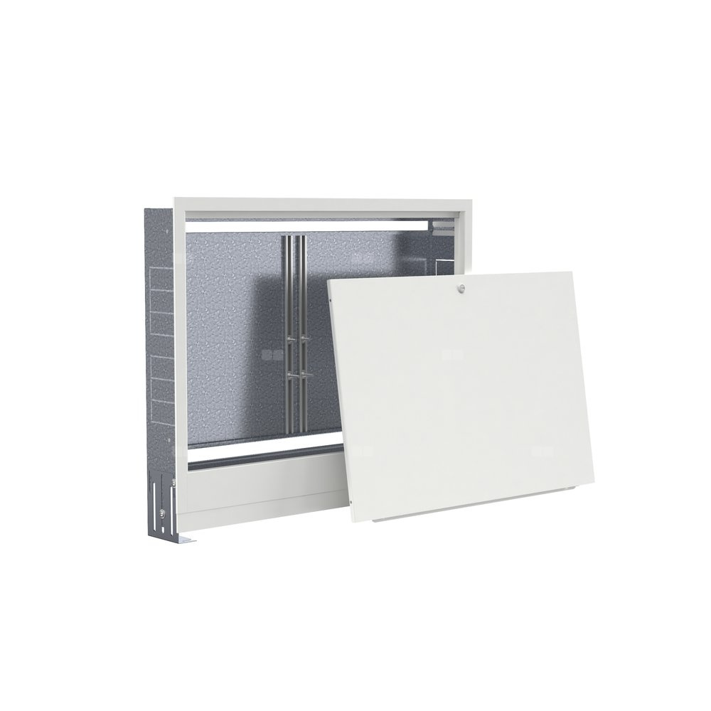 Rozdzielaczowe szafki podtynkowe QIK o głębokości 120 mm, wykonana w całości z blachy stalowej ocynkowanej o grubości 0,8 mm malowana proszkowo w kolorze RAL 9003. Front wyposażony jest w zamek monetowy, zdejmowany tył szafki umożliwia wygodny montaż. Dostarczana z prowadnicami do montażu rozdzielacza oraz z kompletami montażowych śrub zamkowych o różnych długościach.