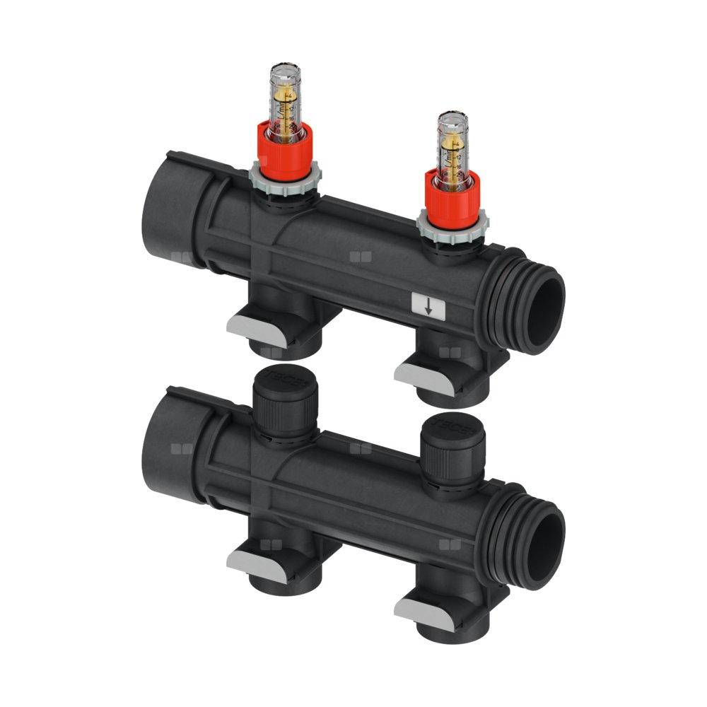 TECEfloor kompletny moduł rozdzielacza ogrzewania przemysłowego, zawierający powrót i zasilanie, 2-sekcyjny