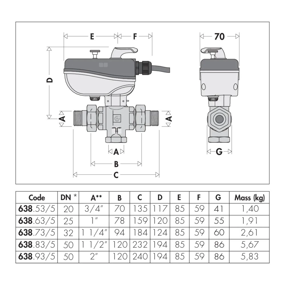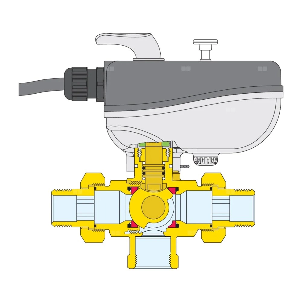 Trójdrożny zawór kulowy z siłownikiem. Z izolacją dla instalacji grzewczych i chłodniczych 1 1/2", czas zadziałania 50s