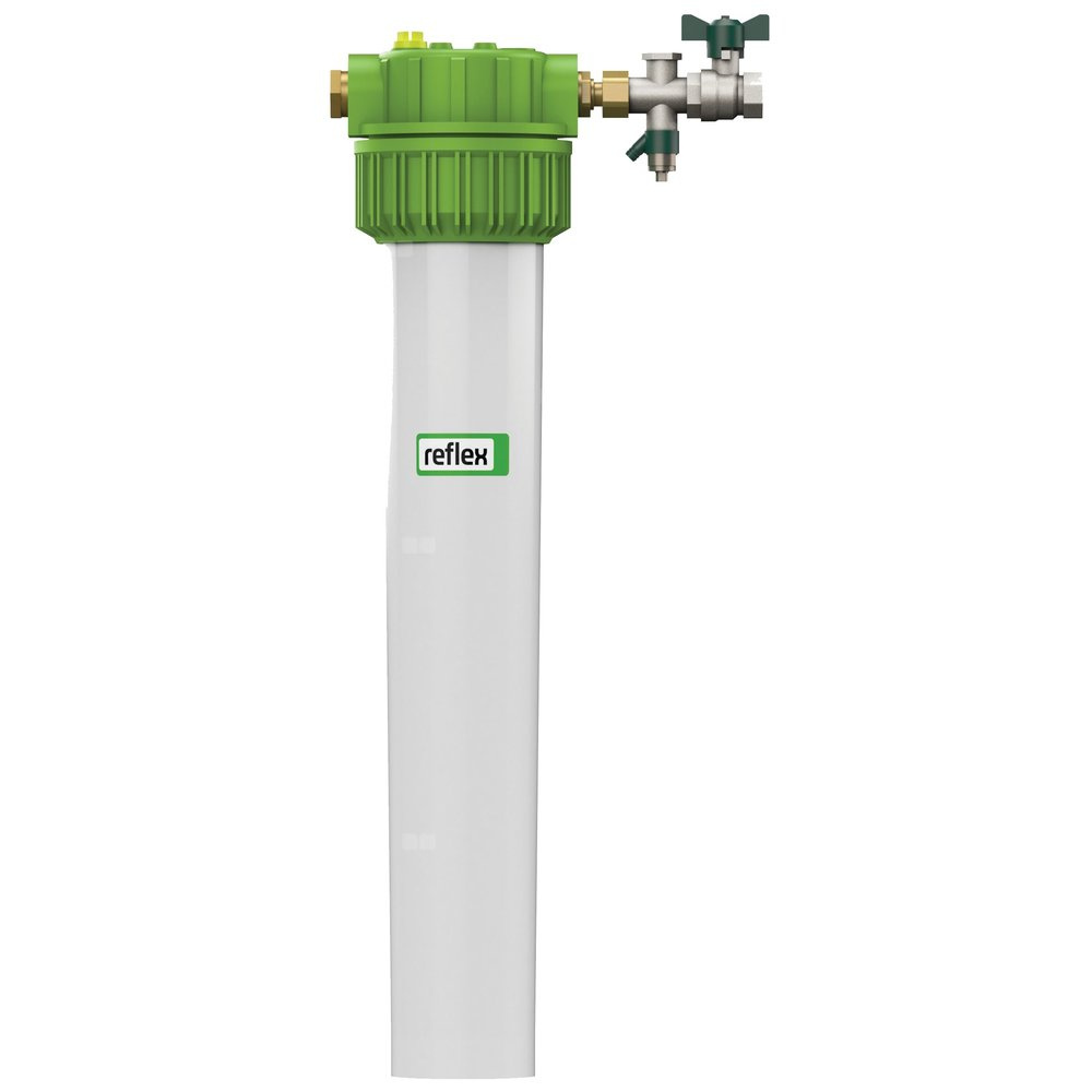 Obudowa wkładu Reflex Fillsoft, kompaktowa armatura przeznaczona do uzdatniania wody uzupełniającej poprzez wymianę jonów w celu ochrony kotła i instalacji grzewczej zgodnie z VDI 2035.