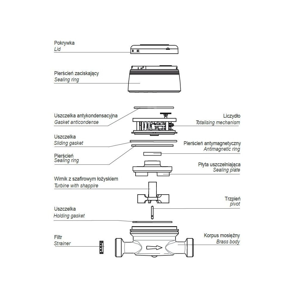 Wodomierz jednostrumieniowy, suchobieżny, zapewniający odczyt za pomocą 8-bębenkowego liczydła. Produkowany w wersji do wody zimnej (50ºC) oraz wody ciepłej (90 ºC) w średnicach 15 i 20mm (1/2” – 3/4”). Zatwierdzony zgodnie z normą MID w klasie R160-H, R50-V lub R100-H, R50-V. Nasze wodomierze jednostrumieniowe suchobieżne mają gwarantowaną długą trwałość i precyzję działania. Wodomierz GSD8-I można doposażyć w moduł radiowy IWM-TX5.