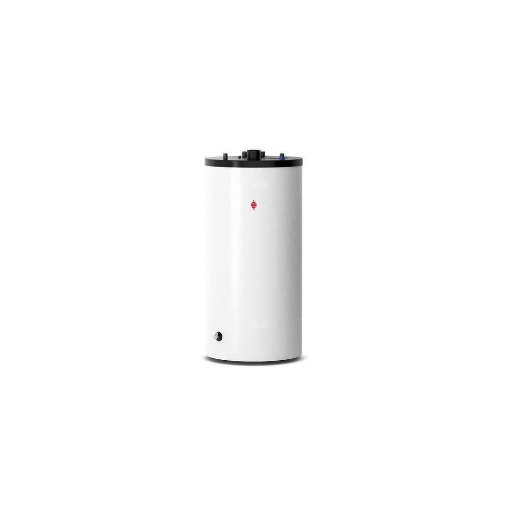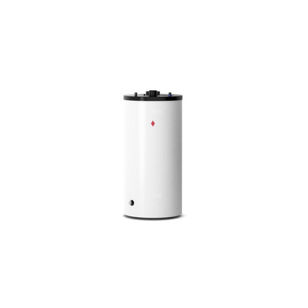 Stojący zasobnik ciepłej wody użytkowej o pojemności 200l, dedykowany do pomp ciepła, klasa izolacji B, biały, okrągły.