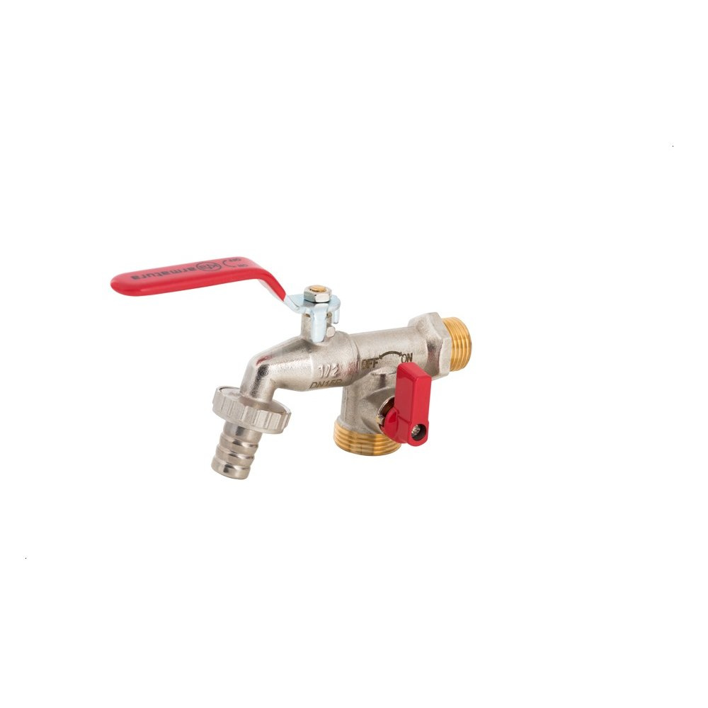 Zawór kulowy czerpalny DN15 (1/2") ze złączką do węża G3/4 z dźwignią oraz dodatkowym przyłączem G3/4