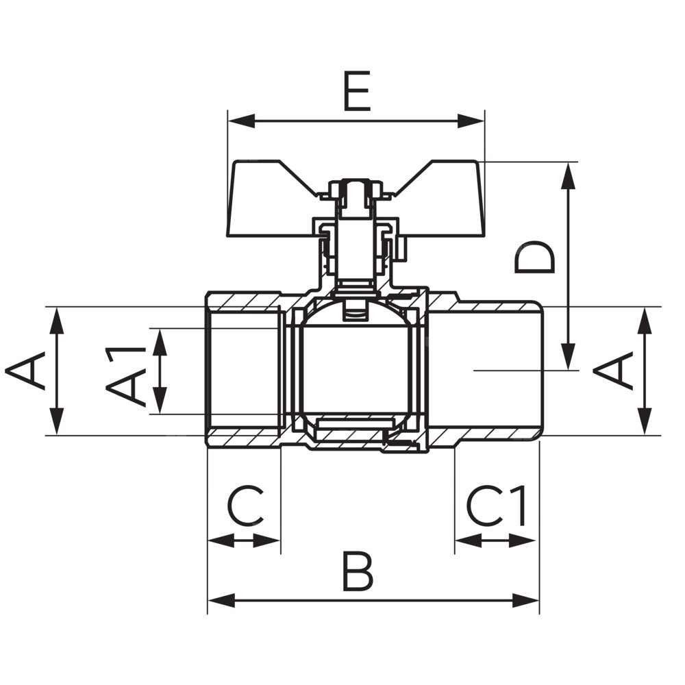 - Materiał uszczelnień kuli: PTFE