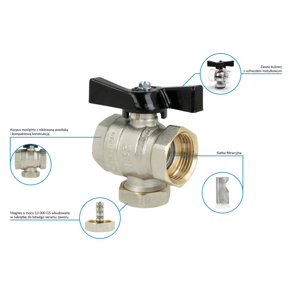 Stosowany w instalacjach grzewczych i chłodzących.Podwójny: mechaniczny i magnetyczny system filtracji chroni instalację oraz źródło przed zanieczyszczeniami.