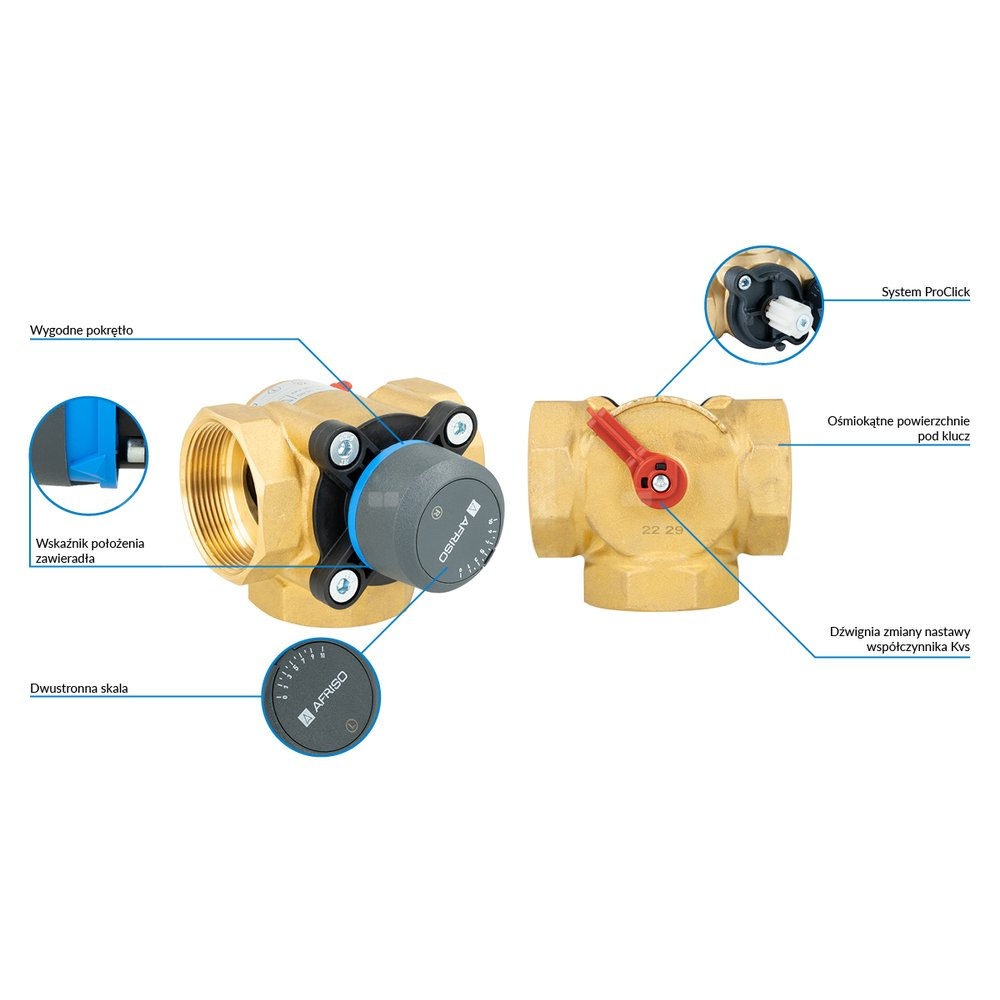 Wygodne pokrętło z ogranicznikami kąta obrotu.