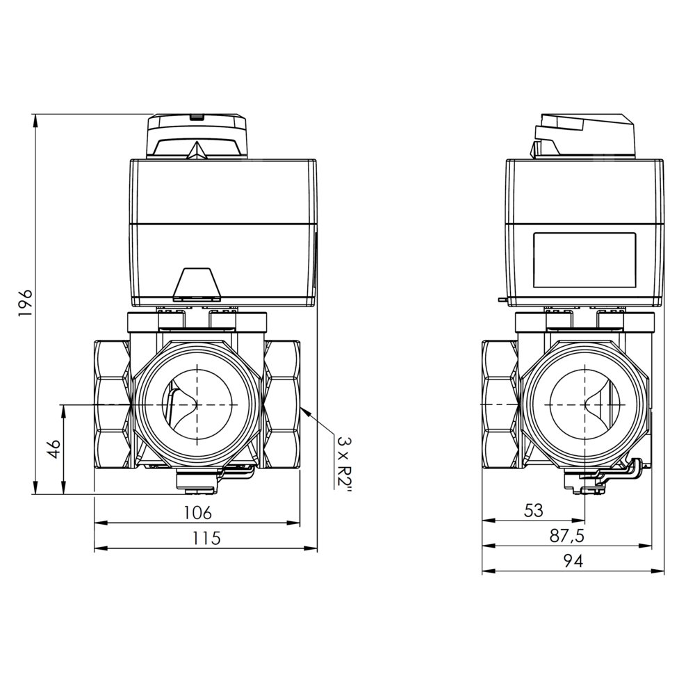 Zawór obrotowy trójdrogowy AFRISO ARV 387 Vario ProClick, mieszający, Siłownik elektryczny ARM 343, DN 50
