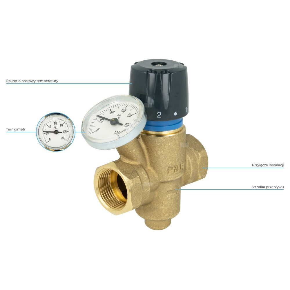 Utrzymuje w danym pionie / gałęzi stałą temperaturę, zgodną z nastawą na pokrętle, równoważąc tym samym całą instalację.