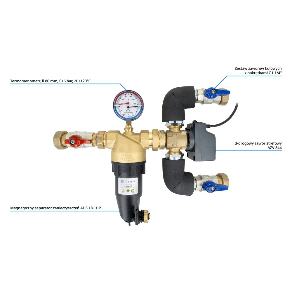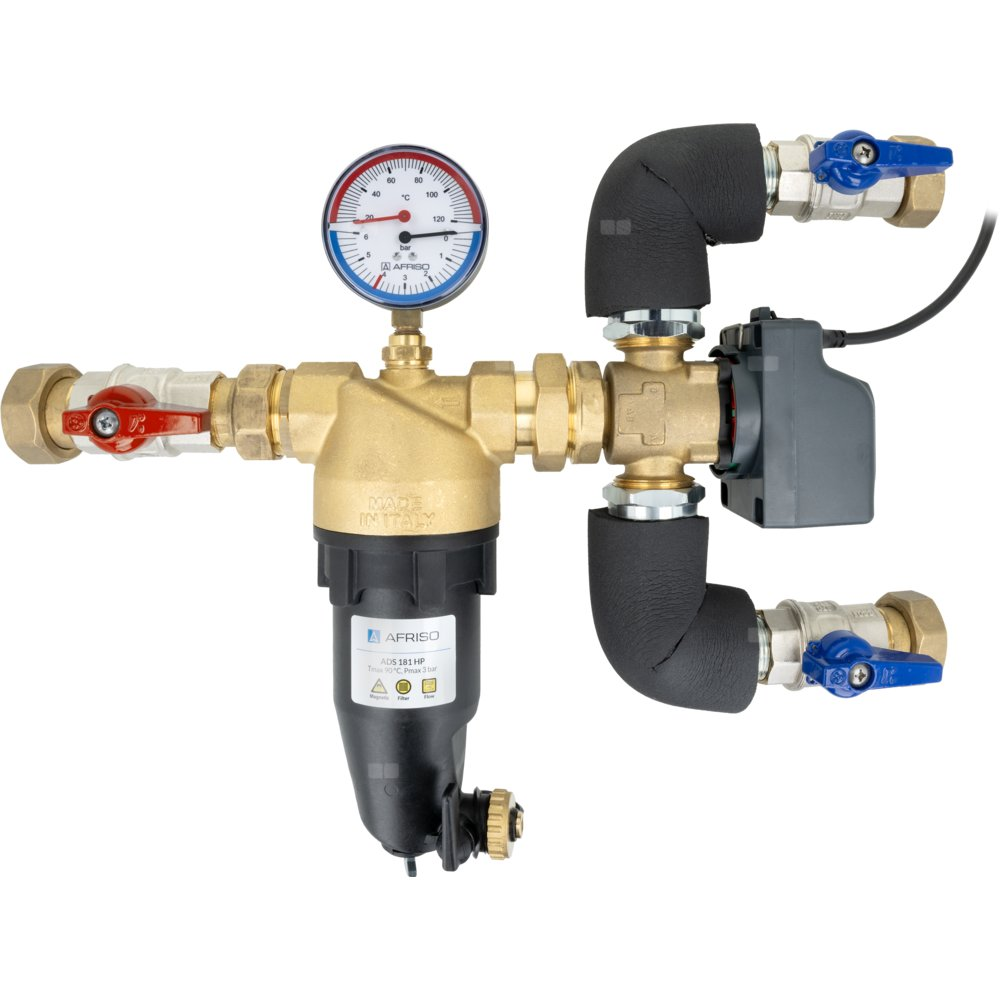 Zespół powrotu do pompy ciepła AMB Lite z zaworem przełączającym AZV, separatorem zanieczyszczeń ADS 181, DN25, przyłącza G1 1/4"