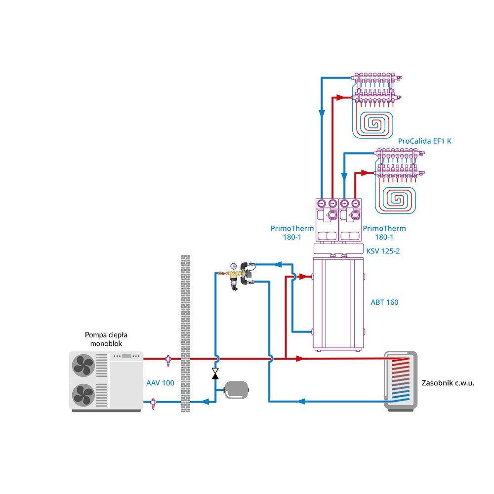 Stosowany w instalacjach grzewczych z pompą ciepła.Montowany na instalacji we wnętrzu budynku pomiędzy pompą ciepła, a zasobnikiem c.w.u. i buforem/instalacją.