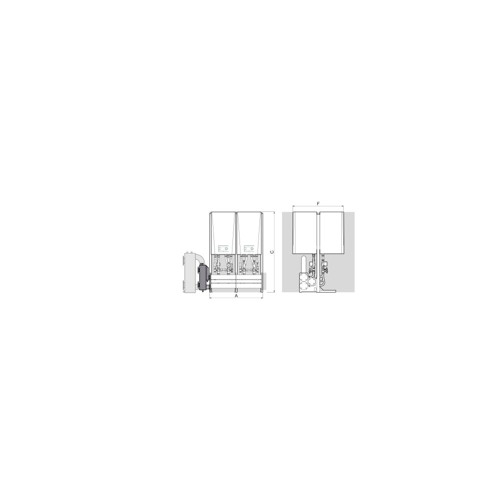 Zestaw kaskadowy tyłem do siebie DE DIETRICH RG, maksymalna ilosć urządzeń: 2xAMC Evo 45-65+2xAMC Evo 90-115