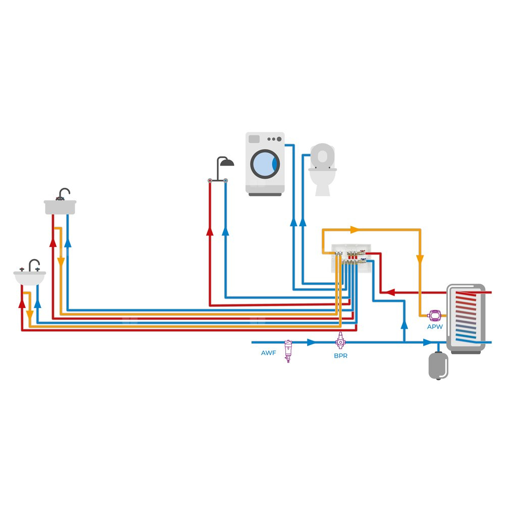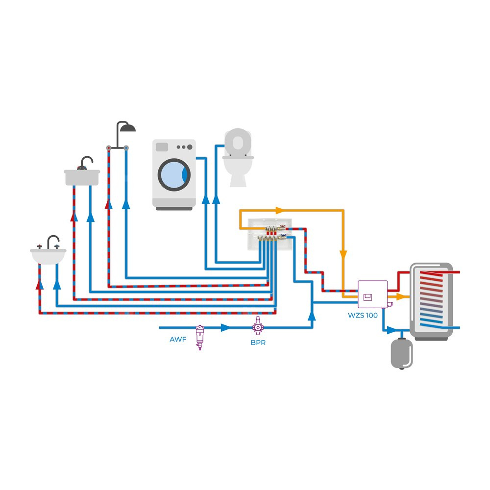 Rozprowadza wodę do poszczególnych punktów poboru.