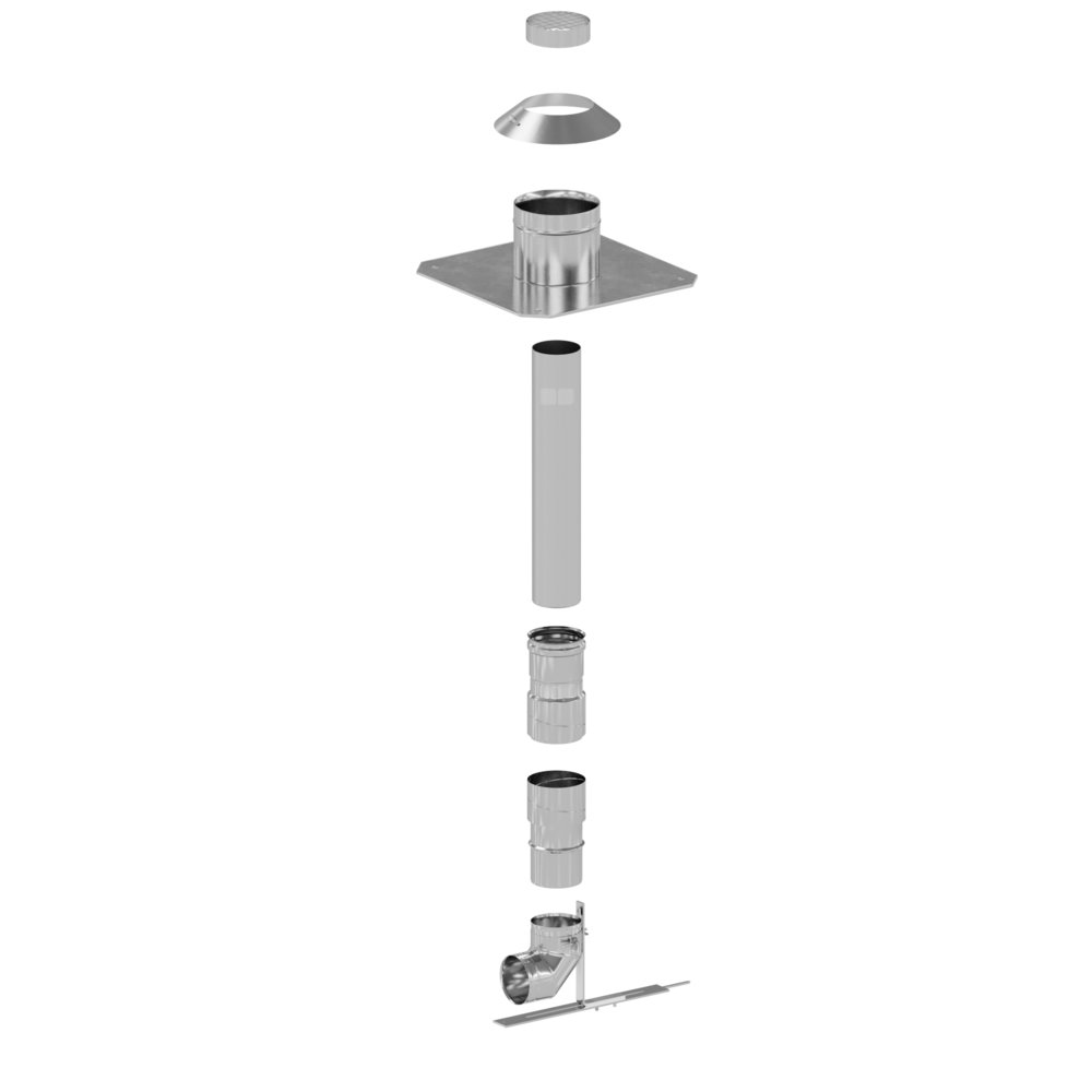 Zestaw zawiera: Kolano 87° DN80, stal podpora do kolana, rura 500mm DN80 stal, płyta dachowa DN80 stal, łącznik dolny do flexa stalowego DN80, łącznik górny do flexa stalowego DN80, deflektor DN80, płaszcz przeciwdeszczowy. Kompatybilny ze wszystkimi kotłami - po dobraniu wyjścia z kotła do podłączenia do kolana.
