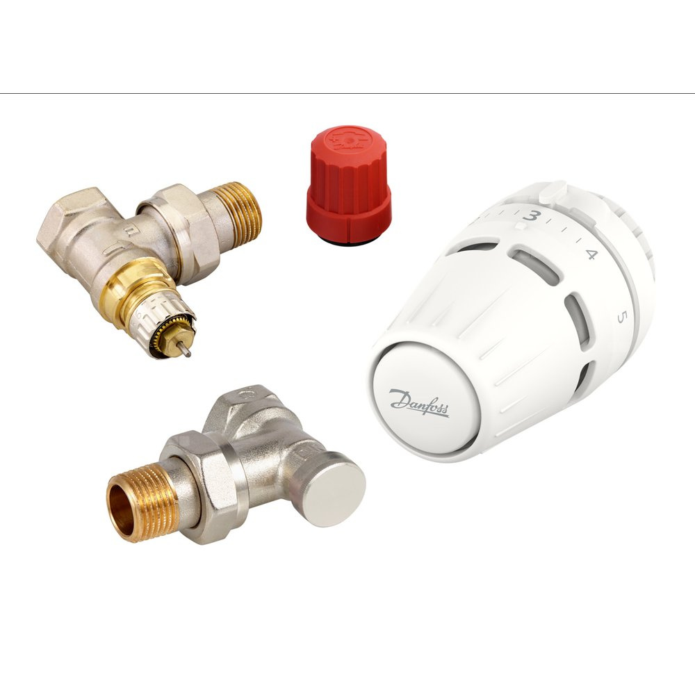 Zestaw termostatyczny kątowy składający się z cieczowej głowicy Regus™, zaworu termostatycznego RA-N i odcinającego RLV-S. Zawór grzejnikowy z O-ringiem.