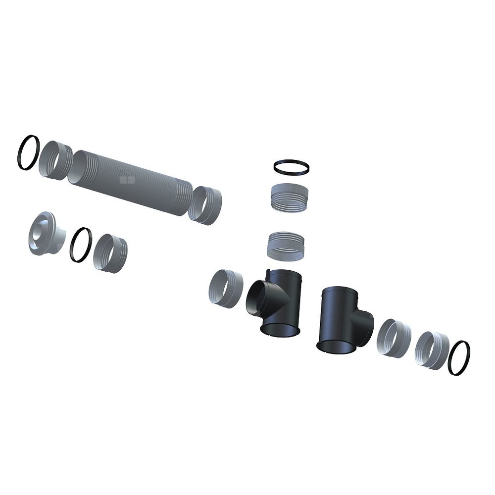 Zestaw wentylacyjny rozszerzony przystosowany jest do wykonania instalacji wentylacyjnej pompy ciepła. Powietrze zasysane jest z zewnątrz lub z pomieszczenia (wybór dzięki przepustnicy z ręczną nastawą położenia. Następnie możemy tłoczyć je opcjonalnie na zewnątrz budynku lub do pomieszczenia przez drugą przepustnicę znajdującą się w zakresie dostawy zestawu rozszerzonego.