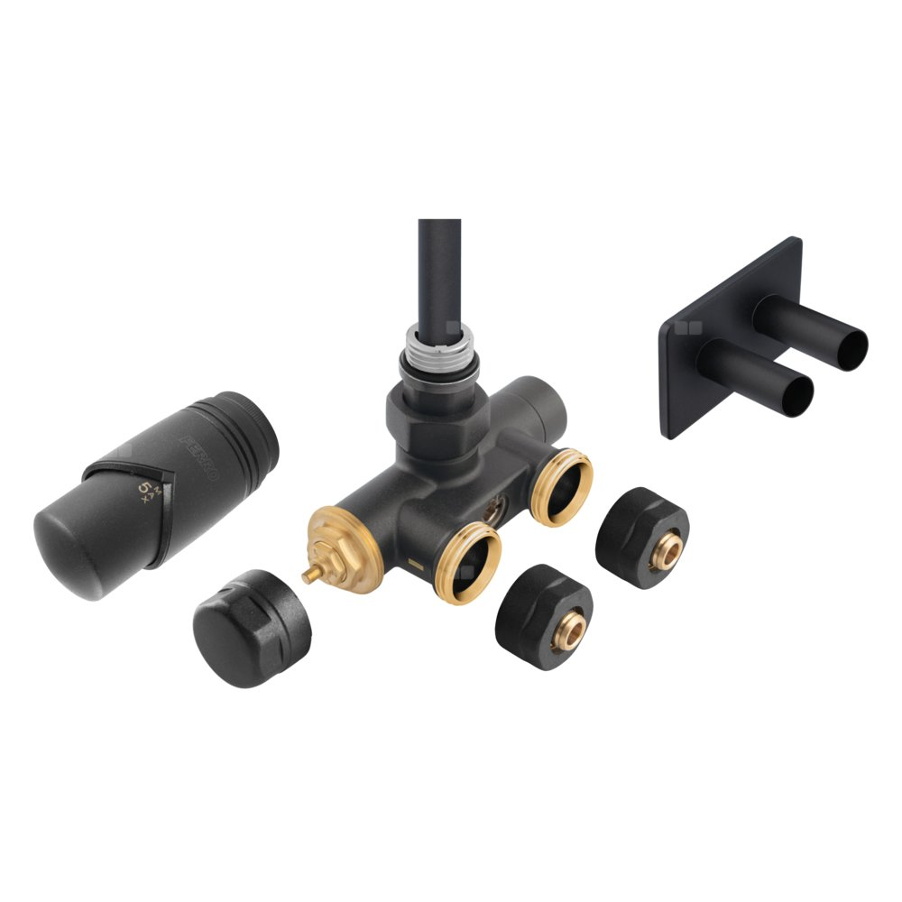 Zestaw zaworu termostatycznego zespolonego kątowego z rurką zanurzeniową, z nastawą wstępną, antracyt